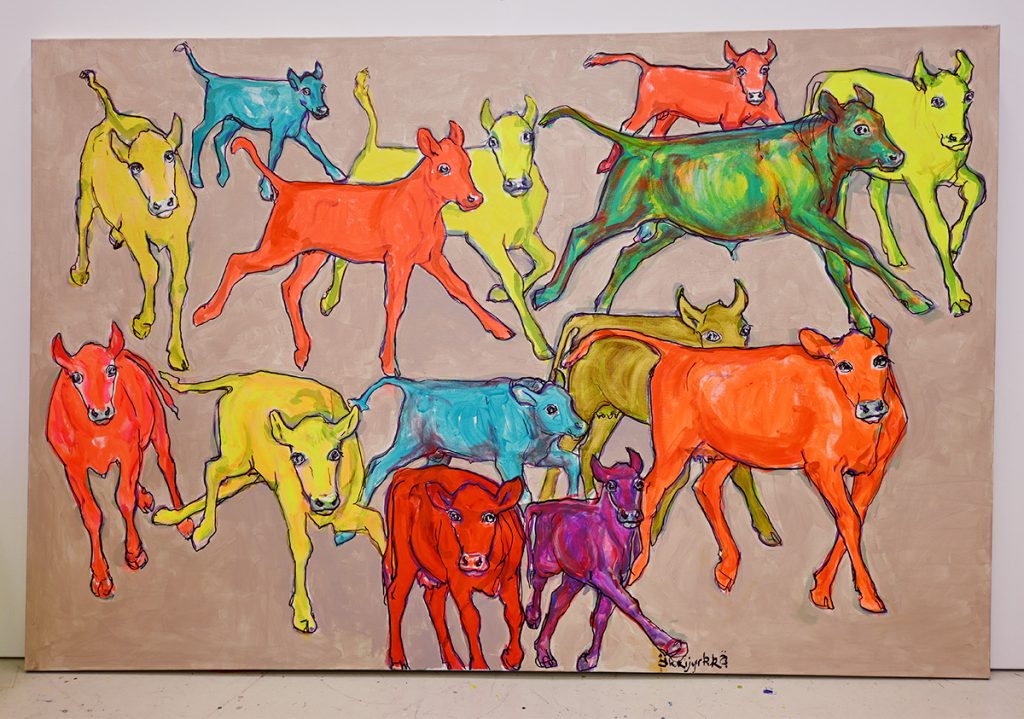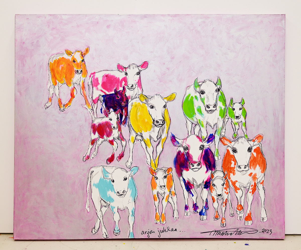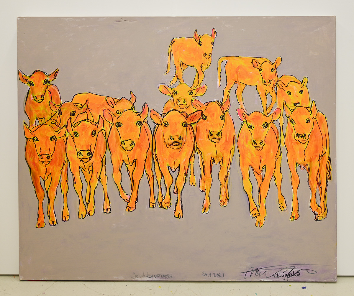 Alla olevasta galleriasta löydät tällä hetkellä saatavilla olevat teokset. Teosten koot vaihtelevat n. 120-200cm x 70-110cm (mukana myös pienempiä teoksia) välillä ja hintaluokka 5 000€-15 000€.
